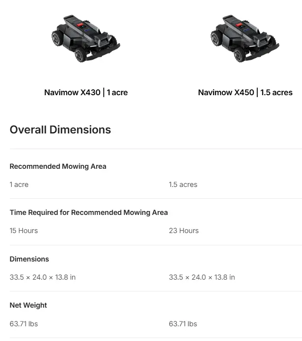 The Navimow X4 series comes in two different variations - X430 and X450.
