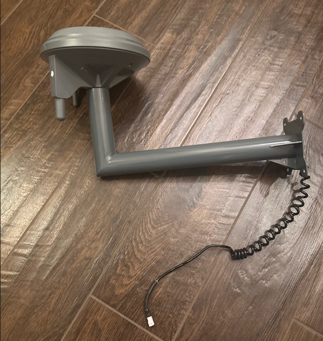 Step 4: Finally remove the pivoting mount right under the antenna by unscrewing the pin holding it fully . This should leave you with the antenna connected to the wire as shown below,